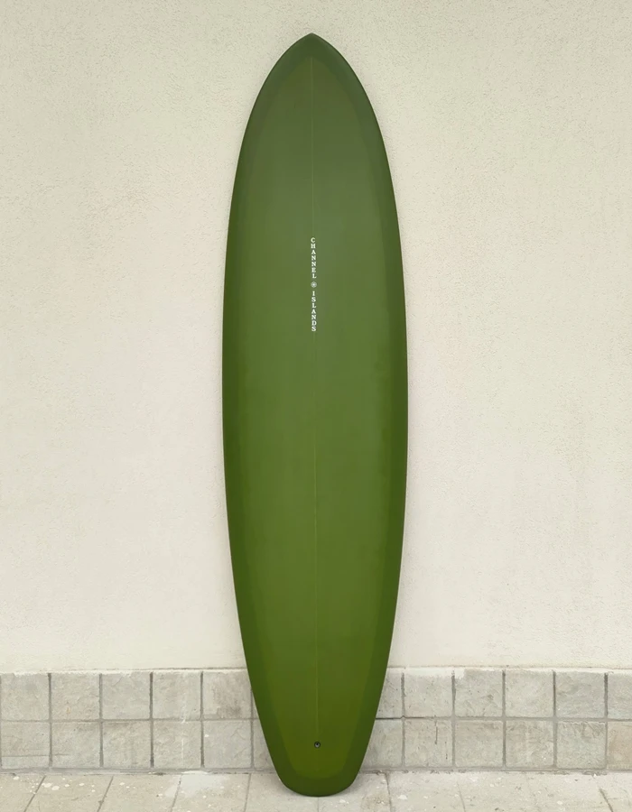 Working with surfer Devon Howard once again (see CI Mid), we set out to build a better egg-style, single-fin midlength—a genre of surfboard that can often look cool and groovy but tend to ride slow and sticky, sometimes lacking pizazz or drive through the turns. By incorporating a Tri Plane Hull bottom with a Al’s classic egg outline, and combined with our modern style rail and rocker profiles, we landed on a rather spicy midlength design that has a surprising amount of trim speed and drive through its turn in small surf—making this a reliable long-railed performer in conditions ranging from subpar to above average.