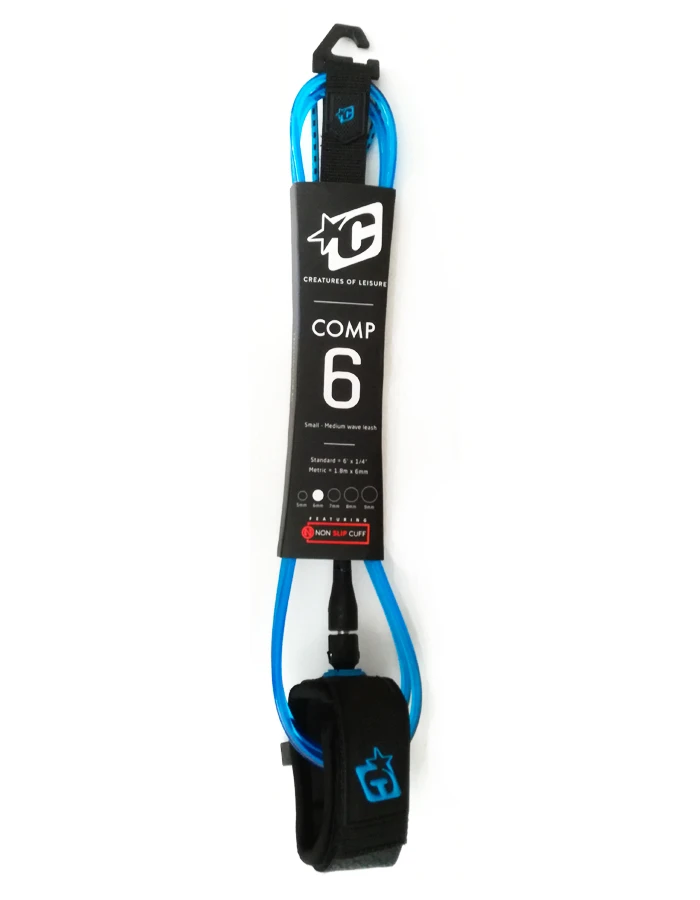 Lightweight Leash for small to medium sized waves. The 6mm cord and 6ft long Comp Leash is perfect for a broad range of conditions and ideal for day-to-day use.
