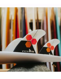 Performance Core (PC) fins are made using a multi-layered resin transfer molding process. The flex pattern in PC fins extends progressively from the base through to the tip, helping the surfer to maintain drive and hold through a turn. This versatile fin material is light, and can be used in a variety of different conditions.