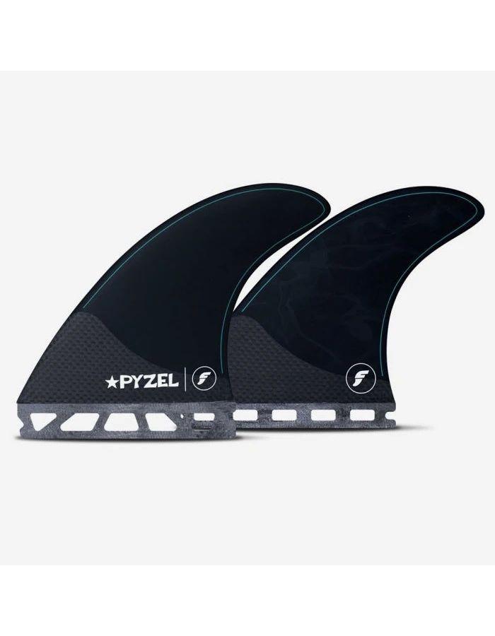 The Pyzel Medium thruster, designed by North Shore shaper Jon Pyzel, is in the Neutral template category. Featuring carbon fiber at the base and honeycomb through the body, the combination of materials gives this set a springy flex pattern suited for generating speed.