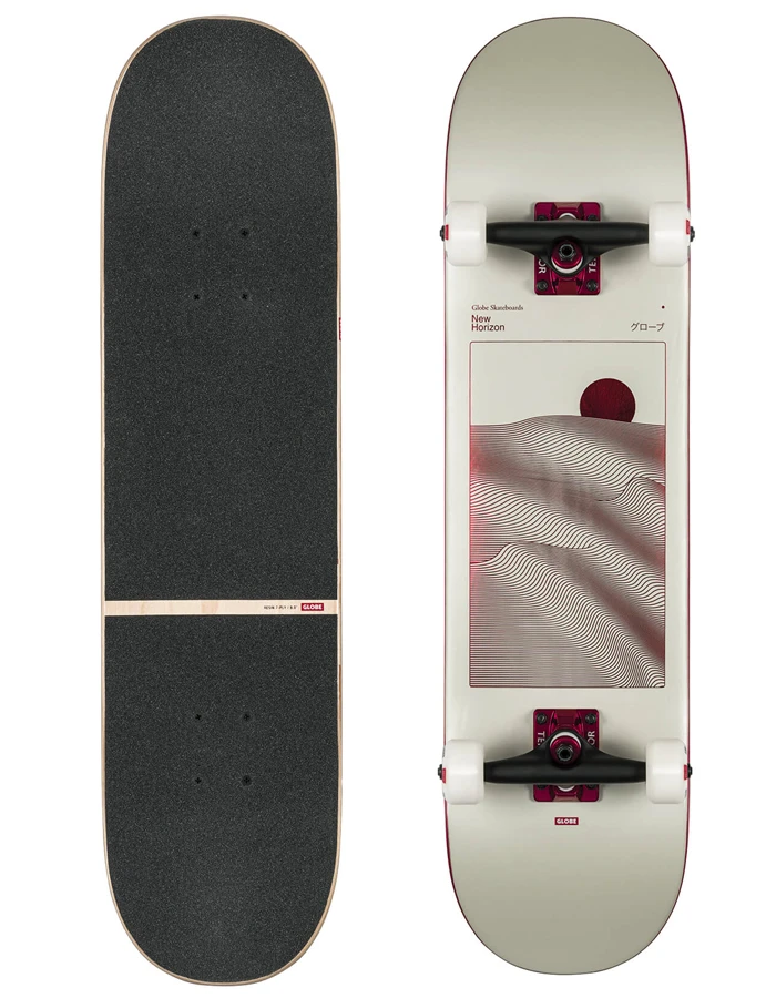 Featured art and aesthetic details on the best complete money can buy. The G2 Parallel Complete 8.0″ in Off-White Foil/Horizon deck is constructed from Resin-7 hard rock maple with full concave and red foil deck art. This styles features 5.25″ Tensor hollow kingpin trucks, 53mm Conical 101a wheels and split black grip tape.