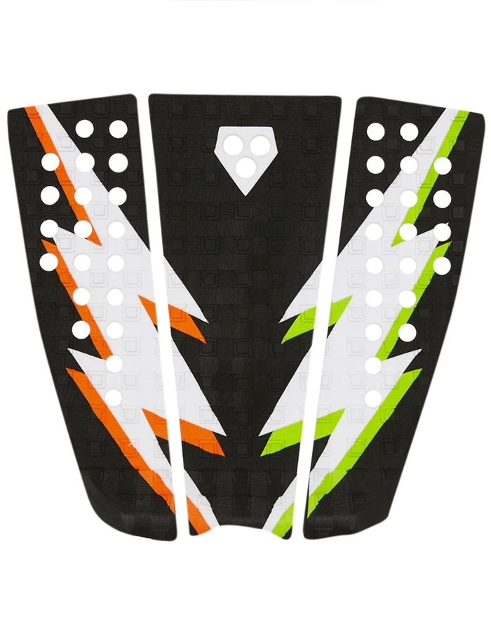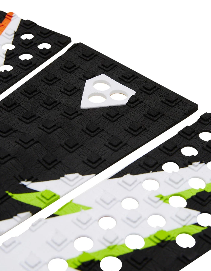 Designed for the professional Kyuss King surfer, the 3-piece Traction Pad features a broad Saber pad with multi-layered Aztec grooves for unprecedented traction in the water.