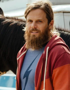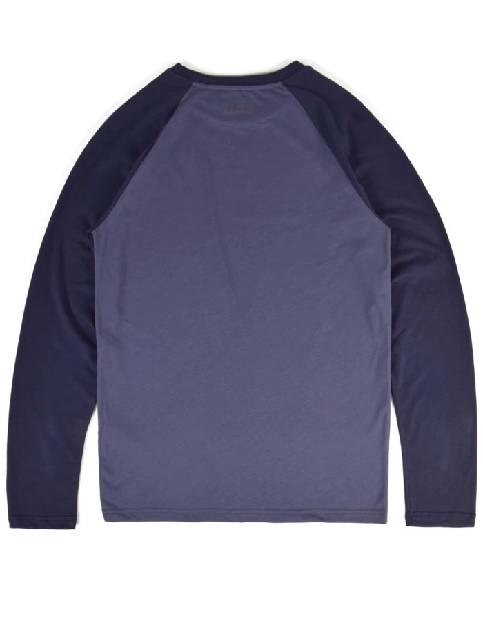 Color blocked vintage jersey raglan longsleeve crew with front logo print. 100%CO