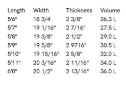 | 6’0″ | 20 1/2″ | 2 13/16″ | 36.0 L |