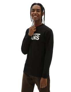 The Vans Classic Long Sleeve T-Shirt is a heavier weight 100% carded ringspun cotton t-shirt with long sleeves and signature front logo graphics. Fit type: classic. Model is 183 cm tall and wearing a size Medium.
